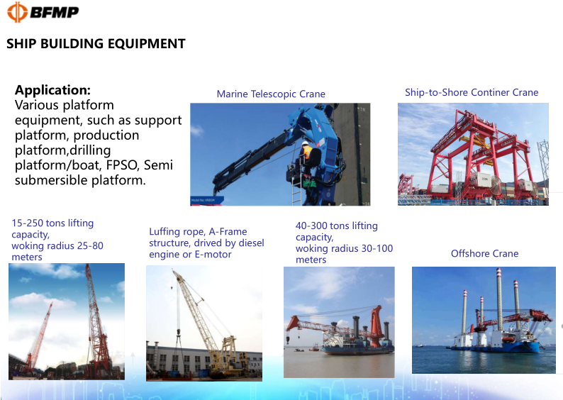 Our company can provide quay container crane, container gantry crane, gantry crane, bridge grab ship unloader, large ship gantry crane, large floating crane, platform crane and telescopic crane, etc.
