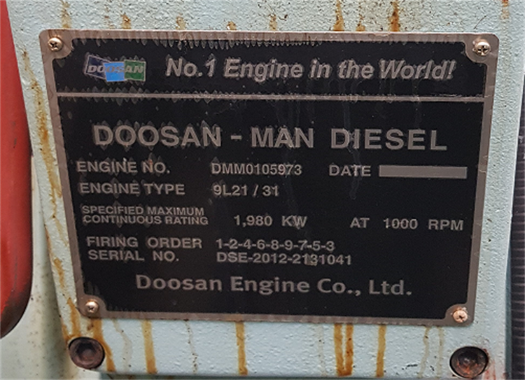 DOOSAN-MAN 9L21/31 HFO generator sets 2 units are in stock for sale, which can be used for land-based power plants. The specific parameters are as follows: