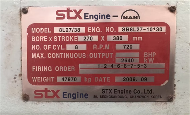 Engine type:STX-MAN8L27/38