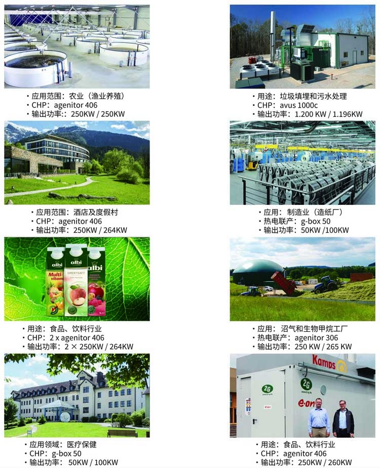 農(nóng)業(yè)、機場、啤酒廠、食品工業(yè)、溫室、雜貨店、醫(yī)院和護理設施、垃圾填埋場、工業(yè)與制造業(yè)、制藥設施、酒店及度假村、大學、廢水處理廠、微電網(wǎng)熱電聯(lián)產(chǎn)、可再生天然氣設施等。
