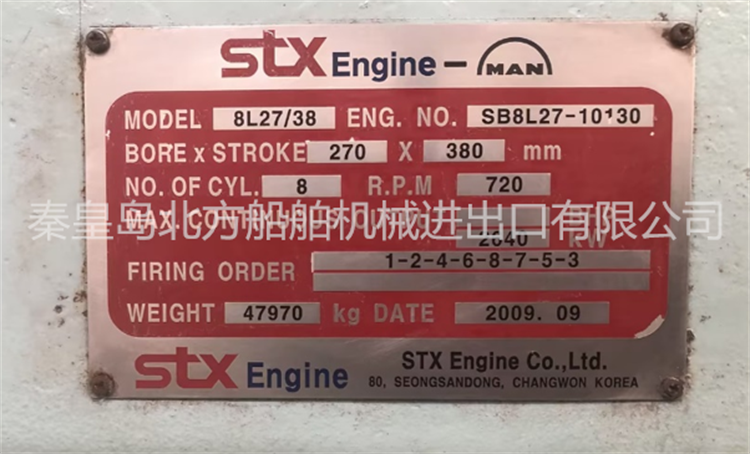 STX-MAN 8L27/38柴油發(fā)電機組4臺待售,原裝全新機,可用于陸用電站,具體參數(shù)詳情如下: