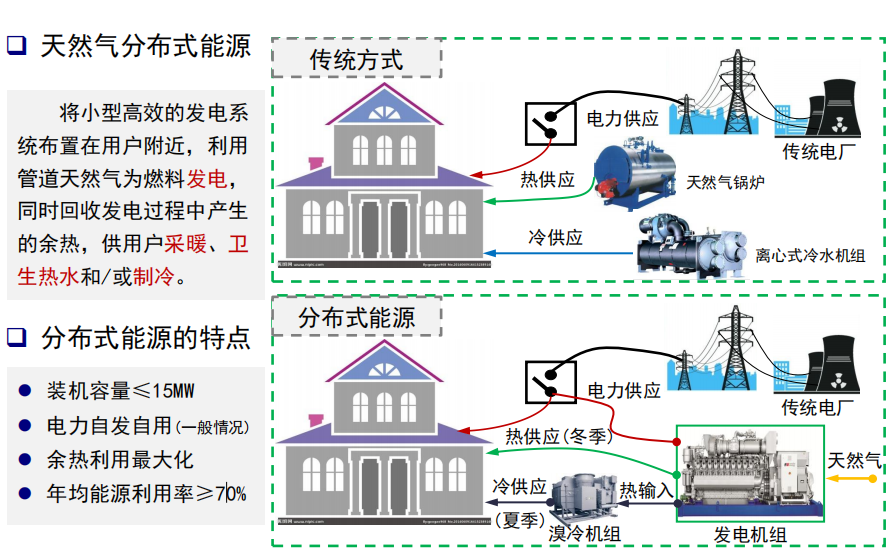 分布式能源是指分布在用戶端的能源綜合利用系統。它以天然氣等清潔能源為主要一次能源,通過冷熱電三聯供等方式實現能源的梯級利用,綜合能源利用效率可達70%以上。與傳統的集中式能源供應相比,分布式能源具有更高的能源利用效率、更低的能源輸送損耗和更強的能源供應靈活性。