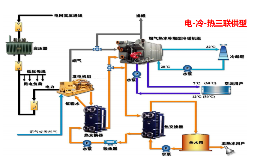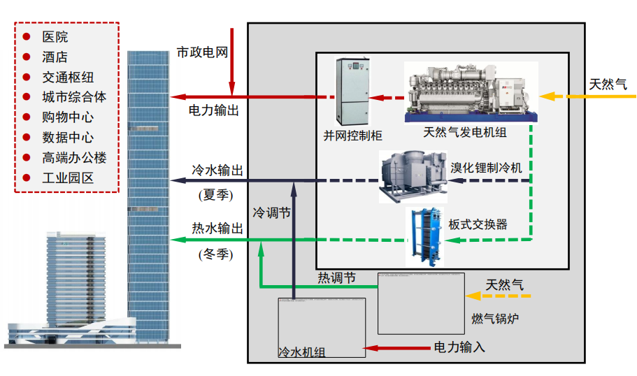 采用清潔的天然氣為燃料,極大地減少了有害物的排放。與傳統集中供能系統相比,可減排33%的二氧化碳,節(jié)能約23%。此外,就近供電減少了大容量遠距離高電壓輸電線的建設,降低了電磁污染和土地占用。