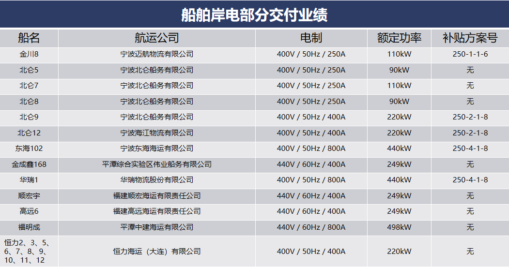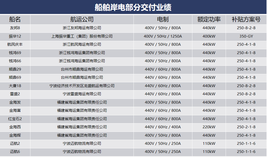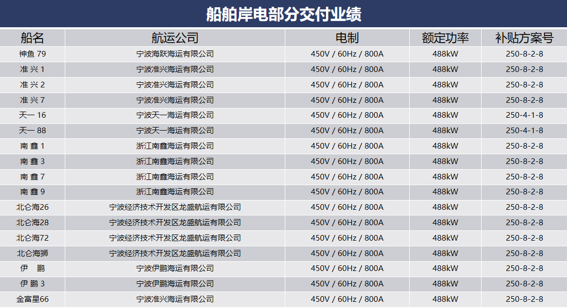 船舶岸電部分交付業(yè)績